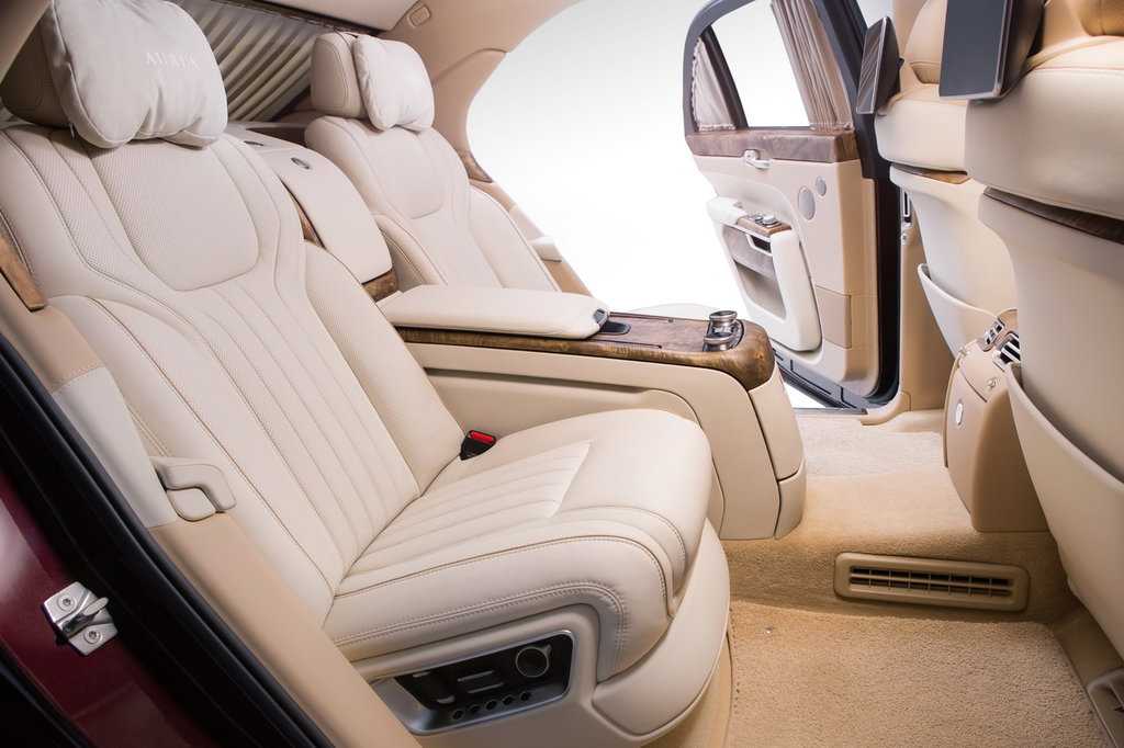 Внутри российского седана-лимузина использована дорогая отделка из кожи и дерева, тогда как в качестве декора здесь применяется обязательный в таких случаях хром. Внушительные габариты Сената обещают много пространства для ездоков, независимо от места их расположения, а в списке базовой комплектации найдется все, что необходимо для комфортного перемещения: