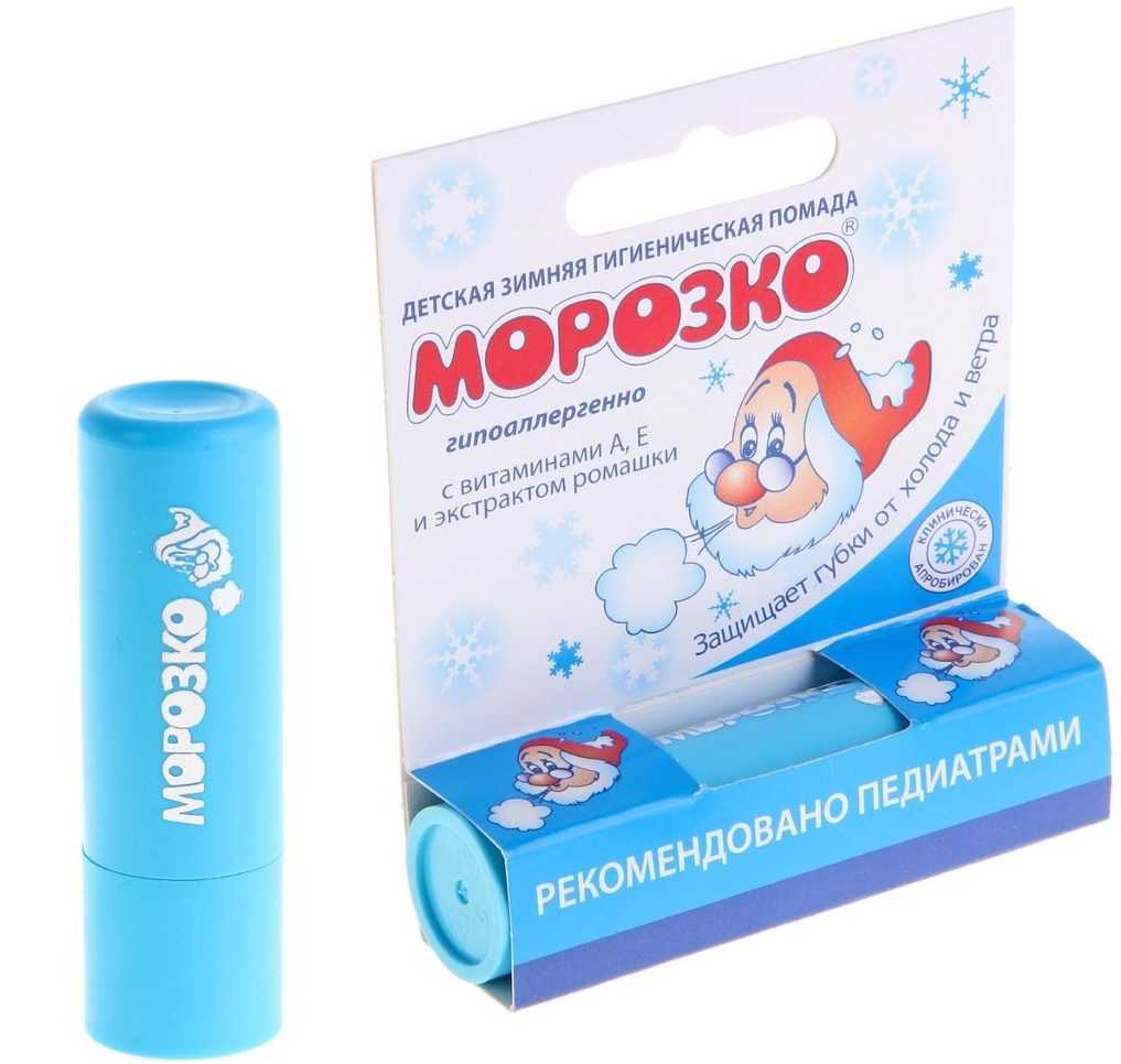 Детская гигиеническая помада, рекомендованная для применения в зимний период. Она хорошо увлажняет и питает кожу, без ярко выраженного вкуса и запаха.