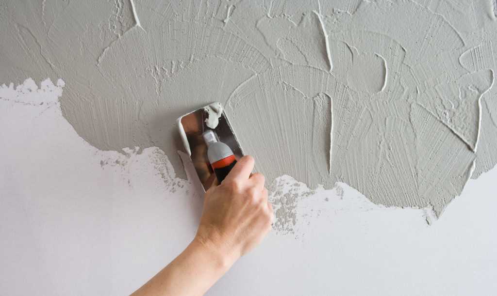После полного просыхания грунта, состав наносят слоем 5-8 мм, шпателем формируя нужный рисунок. После того, как раствор схватится (для гипсовых смесей – это минут 10-15), поверхность заглаживается этим же шпателем.