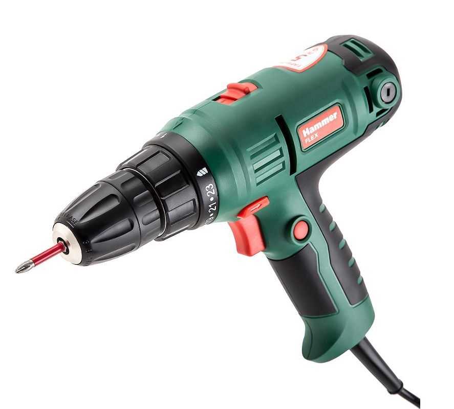 Дрель-шуруповерт мощностью 300 Вт для домашнего использования. Имеет функцию реверса и электронную регулировку частоты вращения двигателя. Дополнительно может работать в режиме сверления, обеспечивая отверстия в дереве или металле. Возможностей устройства хватает на то, чтобы просверливать в металле отверстия диаметром до 10мм. Весит модель 1,5 кг, что может создать неудобства сложности при долгой работе.