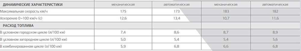| Версия | Разгон 0-100 км/час, сек | Макс. скорость, км/час | Расход, в городе, л/100км | Расход, на трассе, л/100км |