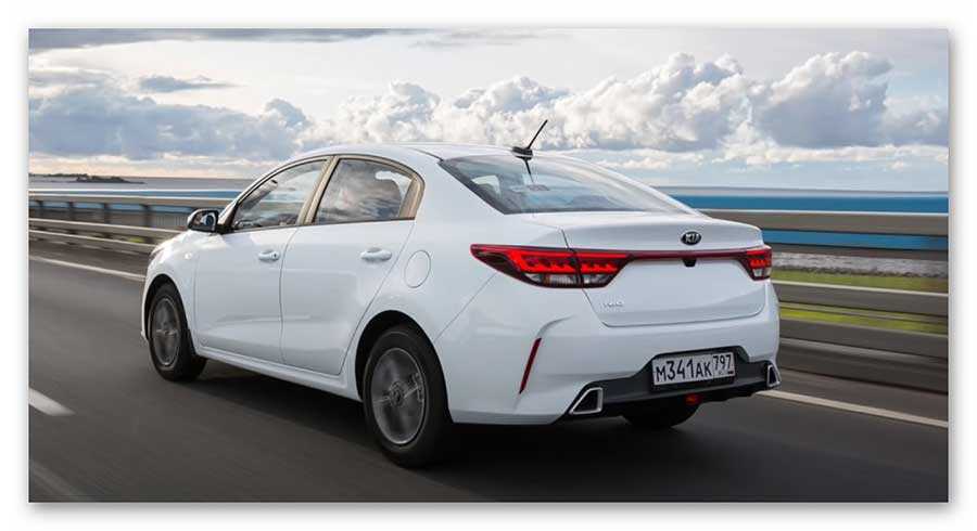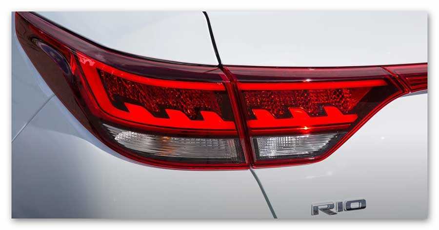 Kia Rio, по мнению многих автолюбителей, отличается привлекательным внешним видом, в котором сочетаются плавные формы, резкие переходы и выразительные выштамповки. Корейская модель укомплектована большой головной оптикой, которая вытянулась вдоль рельефного капота. Фирменная радиаторная решетка у седана очень узкая. Но трапециевидный воздухозаборник, занимающий большую часть переднего бампера, имеет довольно крупные размеры. Интересным также можно назвать решение поместить чуть выше компактных противотуманных фонарей тонкие полоски светодиодных ДХО. Задняя часть кузова корейской модели оформлена более просто. Здесь, в частности, присутствуют объединенные за счет дополнительного стоп-сигнала светодиодные фары.
