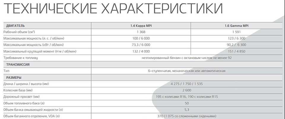 | 1.4 6AT | 12,9 | 183 | 8,5 | 5,1 |