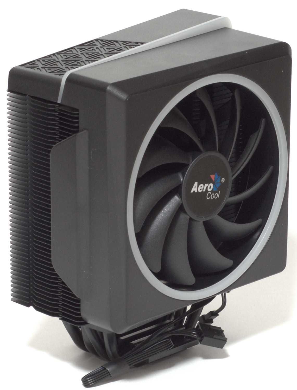 Использование 120 мм вентилятора с оригинальным дизайном в виде кожуха и ARGB-подсветки выделяет Aerocool Cylon 4 среди других башенных кулеров. При этом в плане габаритов он получается относительно небольшим: 126.5 мм (длина) х 76 мм (ширина). Только высота 160 мм не позволит использовать его в «узких» корпусах. В остальном кулер является типичным представителем, имеющим TDP 145 Вт и поддерживающим платформы Intel LGA775/115x/2011(-3)/2066 или AMD AMx(+)/FMx(+).