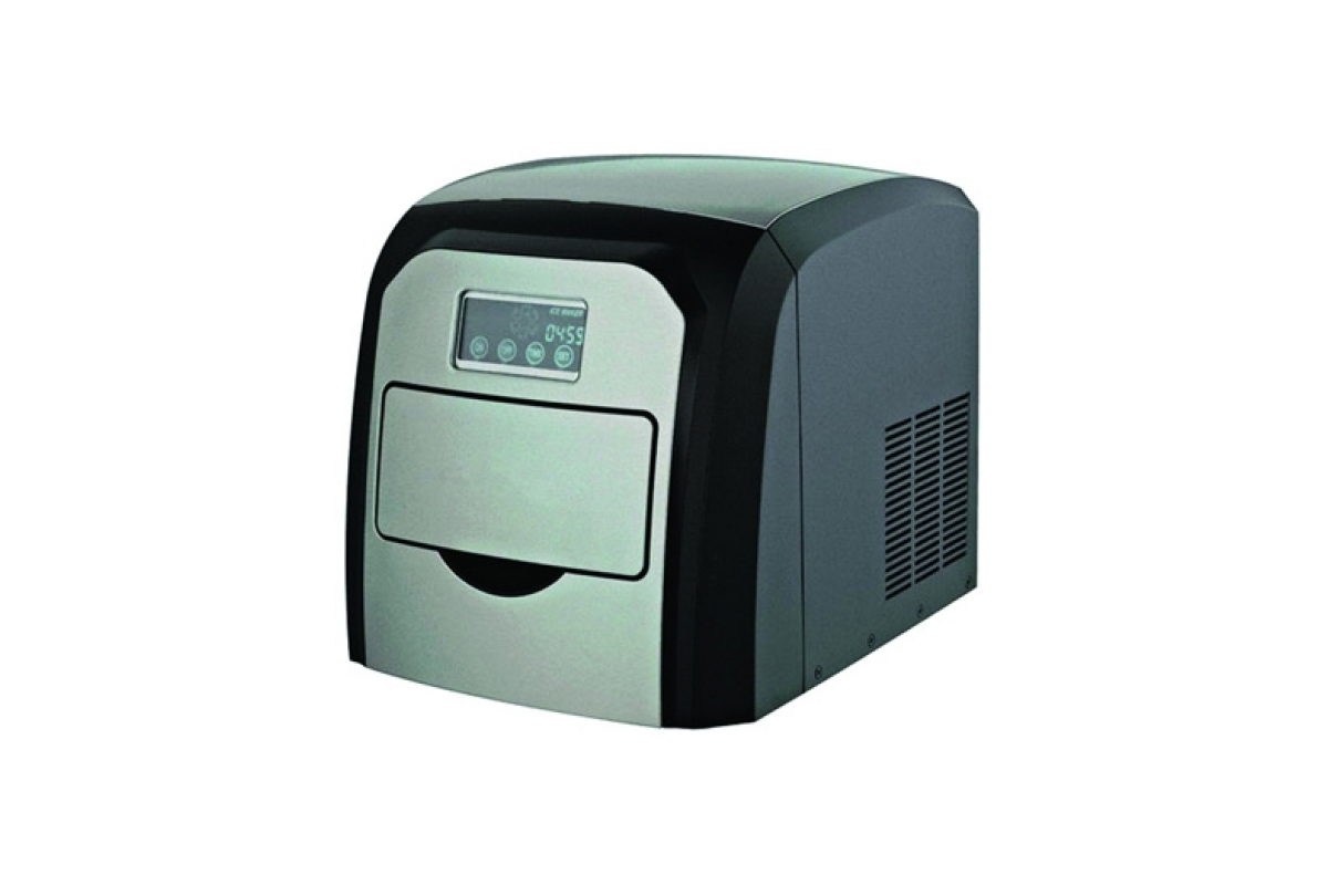 Модель применяет систему водяного охлаждения конденсата, что позволяет снизить потребление энергии. На фронтальной панели расположены вентиляционные жалюзи, обеспечивающие циркуляцию воздуха в агрегатном отсеке. Простое и надежное электромеханическое управление облегчает использование ледогенератора. Объем бункера составляет 15 килограммов, производительность — до 38 кг/сутки. Минимальный уровень шума гарантирует комфорт при эксплуатации прибора в режиме постоянной активности. В стандартную комплектацию входят все необходимые элементы для самостоятельной установки устройства.