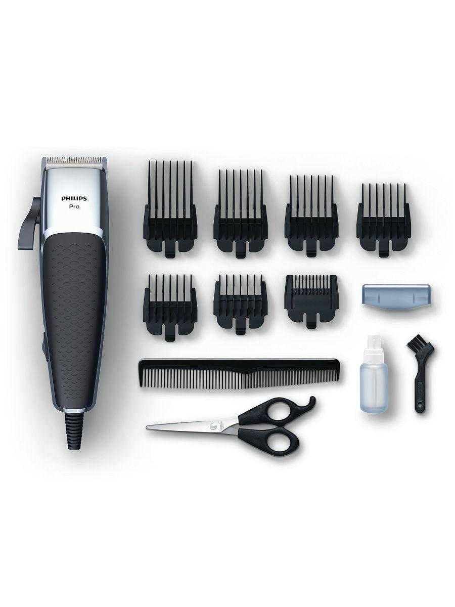 Известная компания представляет полноценный набор для стрижки, который, кроме машинки, включает в себя ещё 12 дополнительных предметов. Комплект состоит из 7 насадок, позволяющих добиваться длины от 0,5 до 25 мм. Регулировка осуществляется сменой ножей или использованием бокового рычага. Материал лезвий – нержавеющая сталь. Из дополнительных аксессуаров можно отметить расчёску, щёточку для чистки, масло, защитную крышку, предотвращающую получение травмы, а также специальные лезвия с закруглёнными краями. Питание только от сети, длина провода составляет 2,8 метра.
