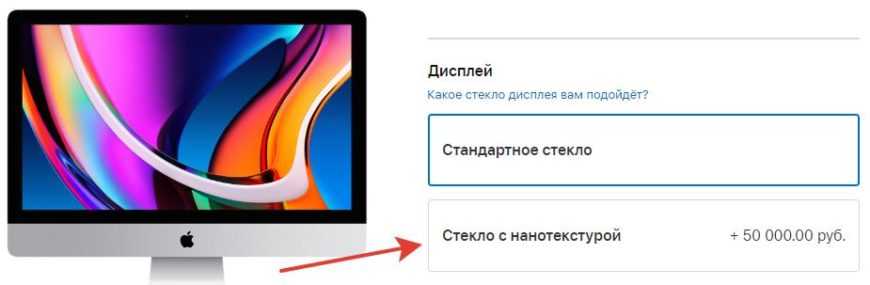 Экран iMac, имеет глянцевую поверхность. Этого достаточно для большинства пользователей, но на всякий случай, если вы любите матовые дисплеи, Apple предлагает вариант экрана с нанотекстурным стеклом. Это дорогостоящий вариант, поскольку он добавляет к стоимости системы еще порядка 45000 рублей.