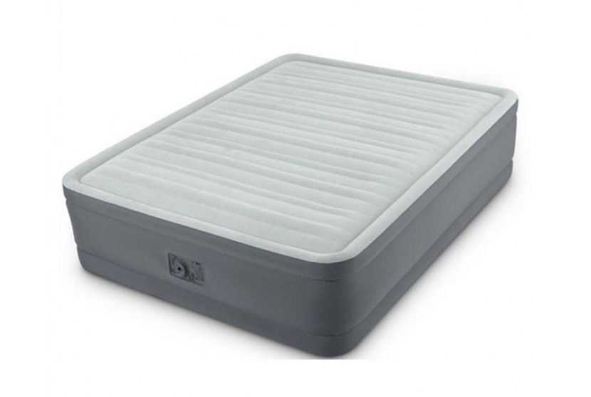 Топовая надувная кровать для двоих производится по технологии Fiber-Tech, которая предотвращает разрыв перегородок и увеличивает срок службы. Внутренние перегородки из полиэфирного волокна облегчают и упрочняют кровать. Ребра жесткости располагаются поперечно, обеспечивая дополнительную твердость и упругость. Нижняя часть и стенки изделия защищены от повреждений тканевым слоем. Интегрированная помпа надувает и сдувает изделие в считаные секунды, упругость регулируется специальной кнопкой на моторном отсеке. При отсутствии розетки применяют механический насос, подключаемый через отверстие в центре клапана. В наличии сумка-переноска и самоклеящаяся заплатка.
