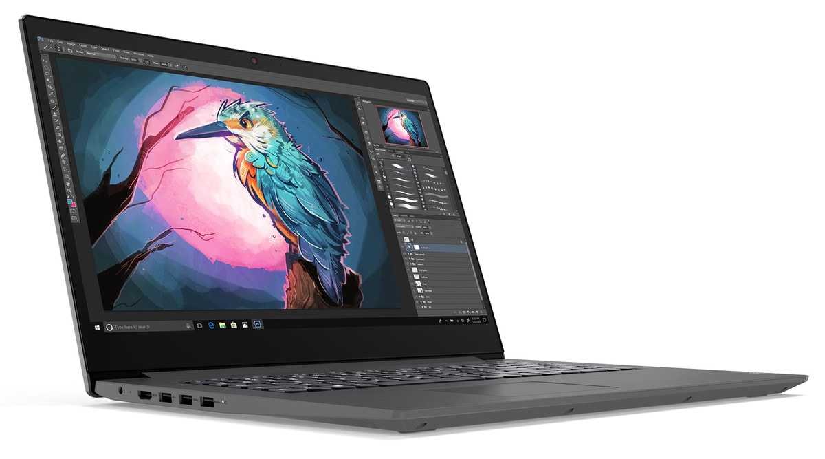 Поскольку Lenovo V17-IIL может похвастаться маленьким весом (2,2 кг.), то легко транспортируется. Берите его в кафе или в поездку, он будет ощущаться в сумке пушинкой. Для хранения файлов и приложений пользователю предлагается 8 Гб памяти. Ноутбук, работающий от аккумулятора на протяжении 7-ми часов.
