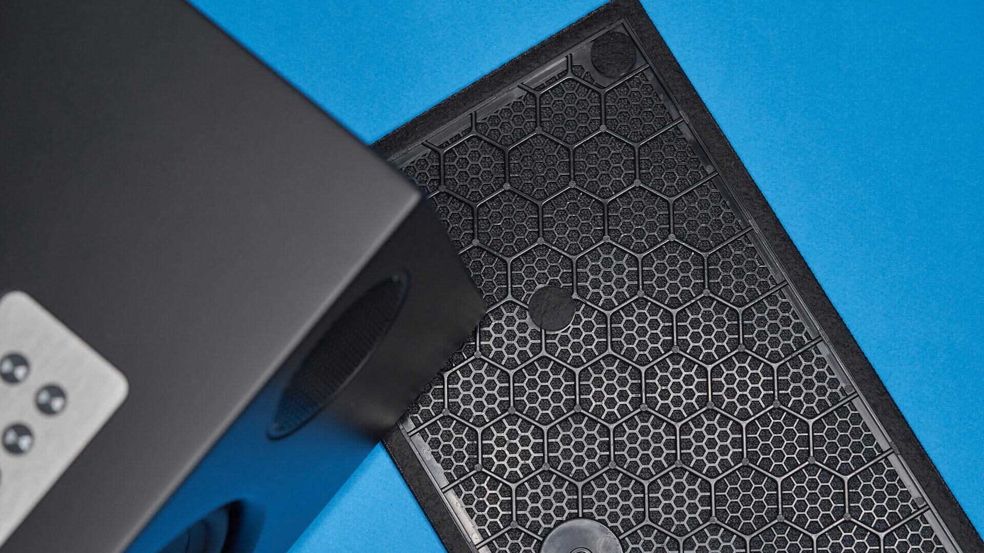 За звук здесь отвечают три излучателя, перекочевавшие из оригинальной Addon C10. Это 13-см вуфер, расположенный по центру, и два тканевых 20-мм твитера, установленные в верхних углах фронтальной панели. Динамики не изменились, но слегка поменялось их оформление — из-за того, что теперь у колонки есть защитная решетка.
