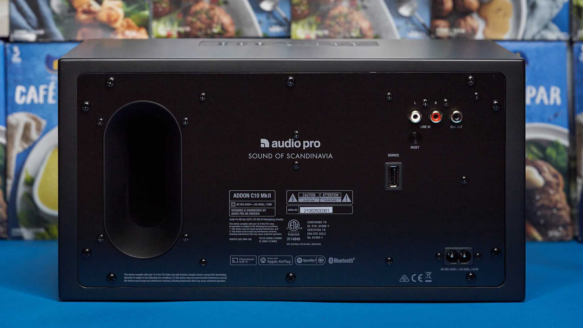 Несмотря на более тяжелый набор , диета подключения Addon C10 такая же, как и у остальной части мультирумного семейства Audio Pro. Вы можете подавать его через Wi-Fi, Bluetooth 4.0 и AirPlay, а также через физические входы для вспомогательных и RCA.
