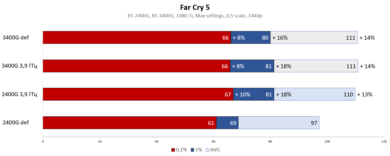 И эта игра не стала исключением, лишние мегагерцы помогают 2400G выйти на уровень новинки.