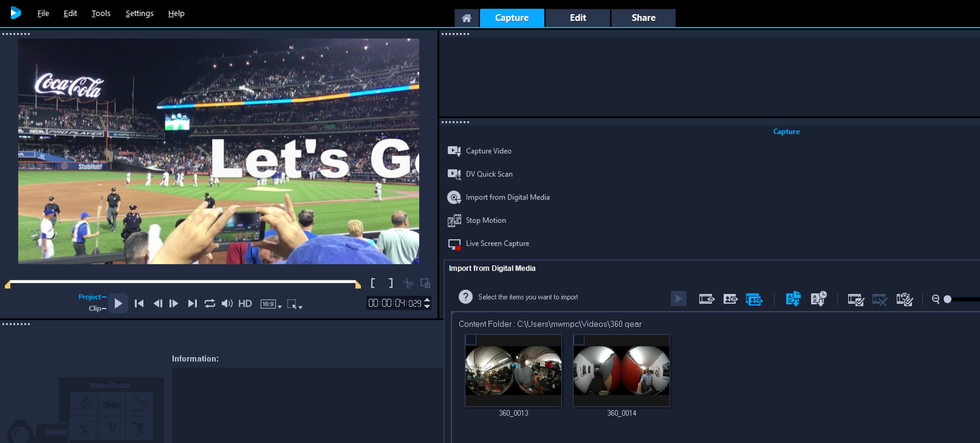 Режим захвата (который вы вводите, нажимая большую кнопку «Захват» вверху), позволяет вам записывать с подключенной камеры, сканировать источник DV и импортировать с Digital Media или мобильного устройства. Вставить мультимедиа в VideoStudio очень просто, но, как только оно появится, приложение не сможет использовать теги, как в случае с Adobe Premiere Elements. Новое окно поиска в версии 2019 VideoStudio позволяет легче находить мультимедиа и эффекты, а также сортировать исходный контент по имени, типу или дате. Мне нравится, как кнопки позволяют легко просматривать только видеоклипы, только фотографии, просто музыку или любую комбинацию из тех категорий, которые вам нравятся.