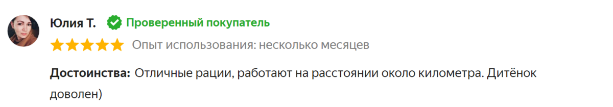 В своём ценовом диапазоне не имеет конкурентов. Снабжена мощным передатчиком, позволяющим на открытой местности осуществлять радиосвязь на расстоянии до 10 км.