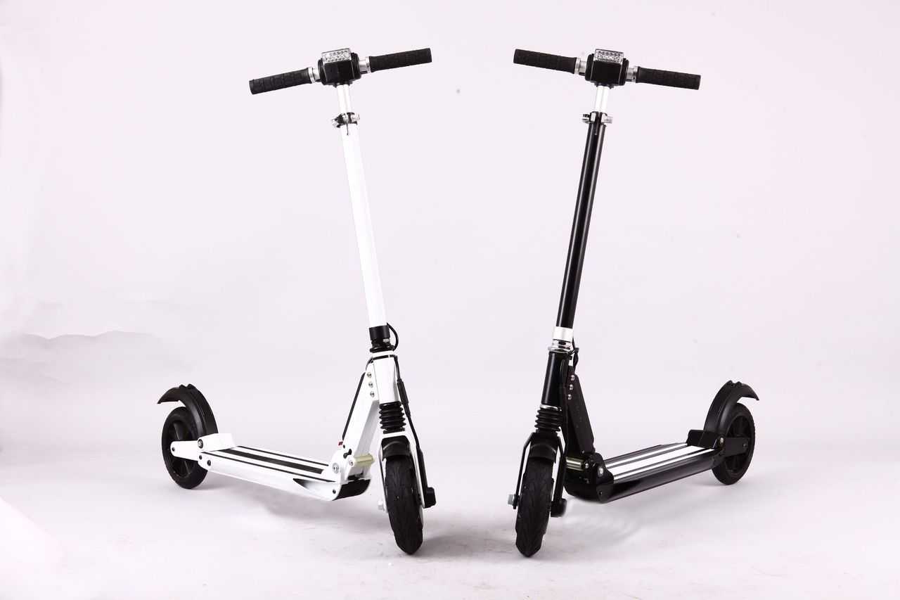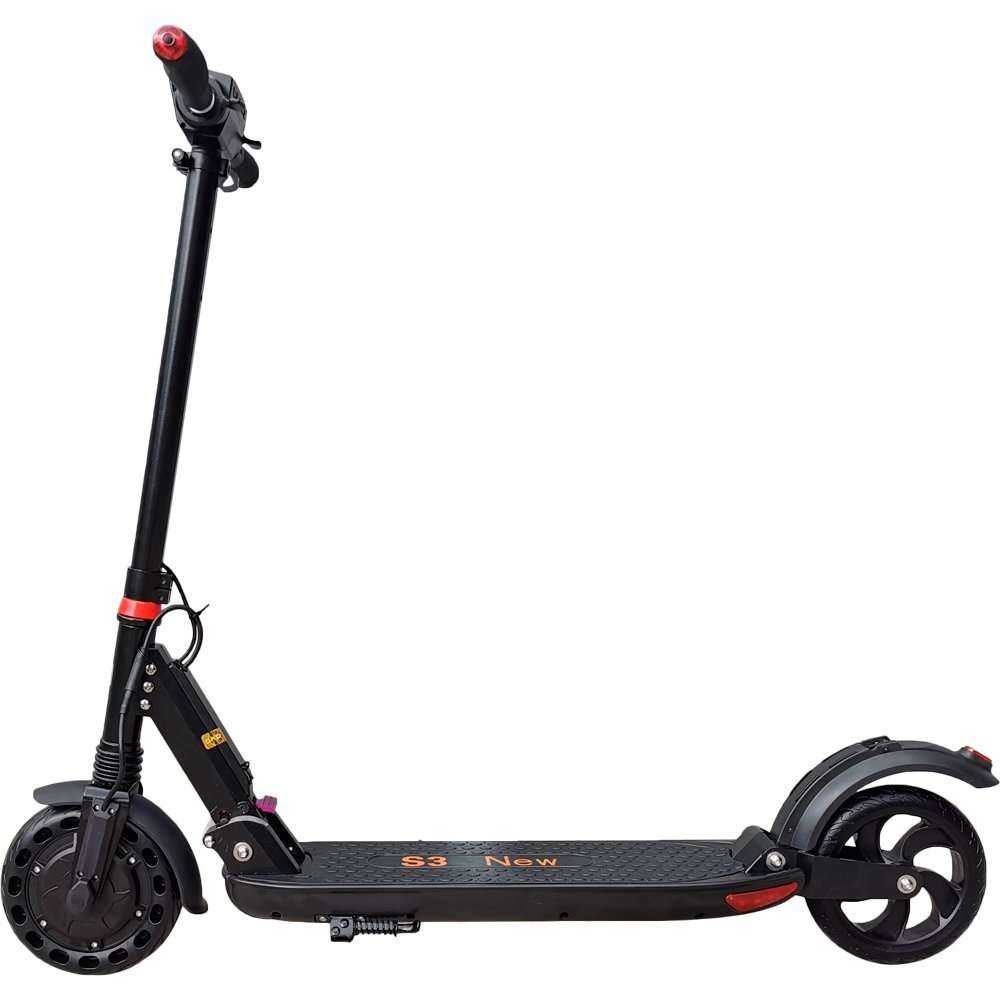 Небольшой городской самокат, который подойдёт взрослым и детям. Он способен развивать скорость до 25 км/ч. На полной зарядке аккумулятора можно проехать до 16 км. Аппарат оснащён передним рекуперативным тормозом, который позволяет подзаряжать электросамокат в процессе торможения. Сзади располагается обычный ножной тормоз.