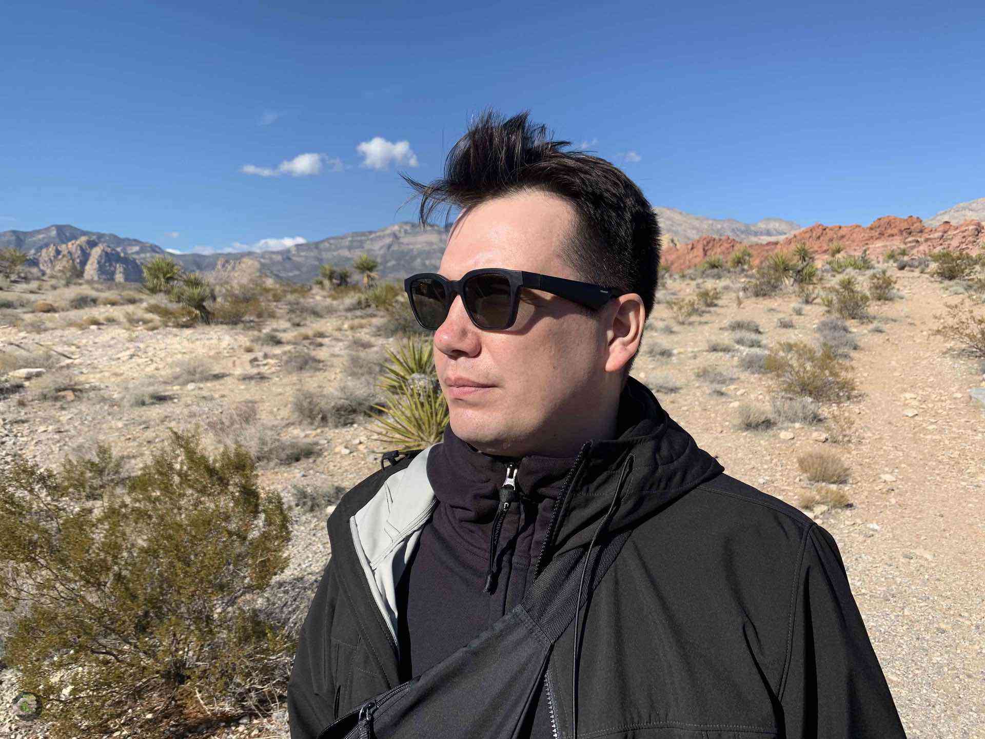 Например, мы в США отправились путешествовать. Очки нацепил в районе десяти утра, доехали до какого-то бестолкового заброшенного города за час, потом дядя Серёжа свернул на какую-то тропку со словами: «Сейчас шесть минут прокатимся по гравию, всё ок». И вот наше «Тахо» через три часа несётся по дну каньона, в пыли, весело, а до этого были адские какие-то горы, ямы, всё как надо. Очки не сели, но я и музыку не слушал, просто их таскал как очки. Пару раз ответил на вызовы, снимал их, снова открывал. К моменту захода солнца оставалось около половины заряда. Уши не болят, по весу вещица не слишком отличается от привычных солнцезащитных очков.