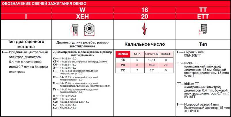Маркировка свечей Denso