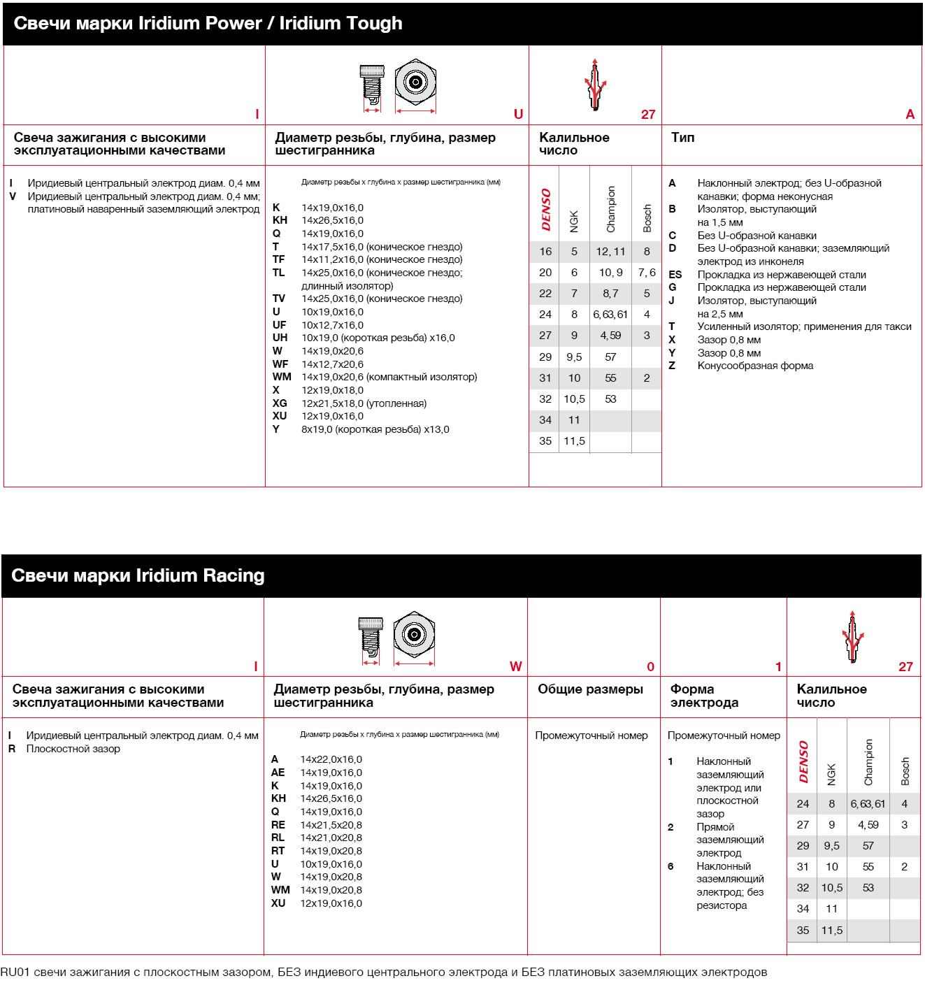 Каждый производитель использует свою схему кодирования параметров свечей. У Denso для новых серий принята следующая: