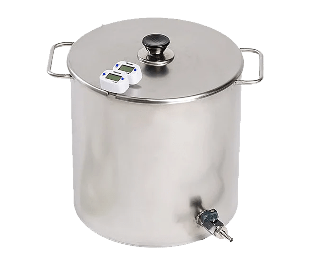 Размеры 48х56х31.5 см при весе 11 кг. В комплекте прилагается крышка из стали, два крана, штуцер, армированный пищевой шланг, силиконовая трубка, термометр, фальшдно. Элементы нагрева и автоматизации европейского производства.