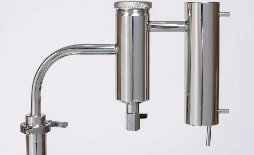 - Благодаря кламповому соединению аппарат можно улучшать. По желанию вы можете добавить вторую царгу, дефлегматор или диоптровое стекло. Аппарат самодостаточный и полностью готов к работе без дополнительного оборудования, но ради комфорта и развития в самогоноварении можно рассмотреть и какие-то «доп’ы».