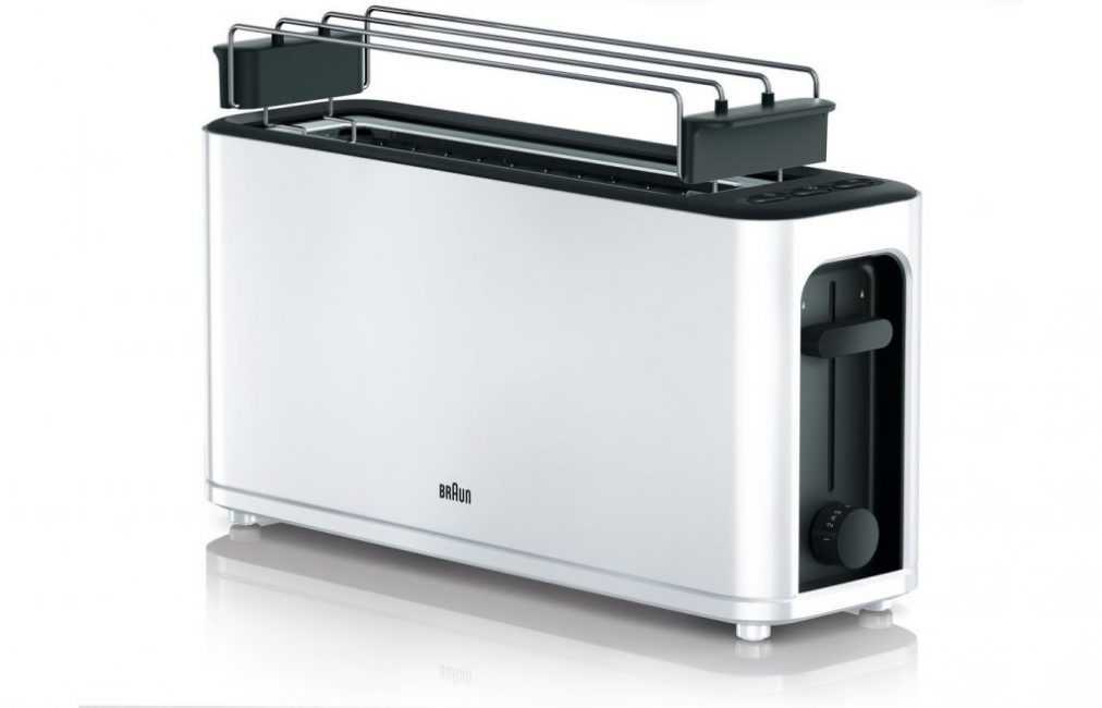 Устройство позволит разморозить или подогреть выпечку без обжарки. Чтобы не обжечься, можно нажать на кнопку, и при помощи специального механизма они поднимутся на нужную высоту. С помощью решетки можно подогревать булочки или бутерброды. Аккуратность и чистота рабочего места обеспечиваются встроенным лотком для крошек.
