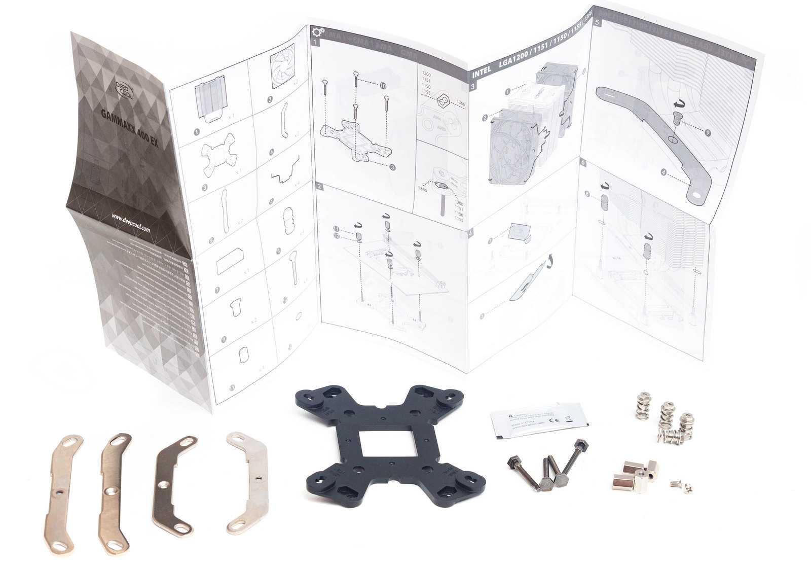 В комплекте планки для сокетов Intel и AMD, пластиковый бэкплейт, а также набор винтов, гаек и шайб для их крепления. Не забыли и о термопасте. Для установки кулера имеется подробная инструкция с иллюстрациями всех шагов по монтажу.