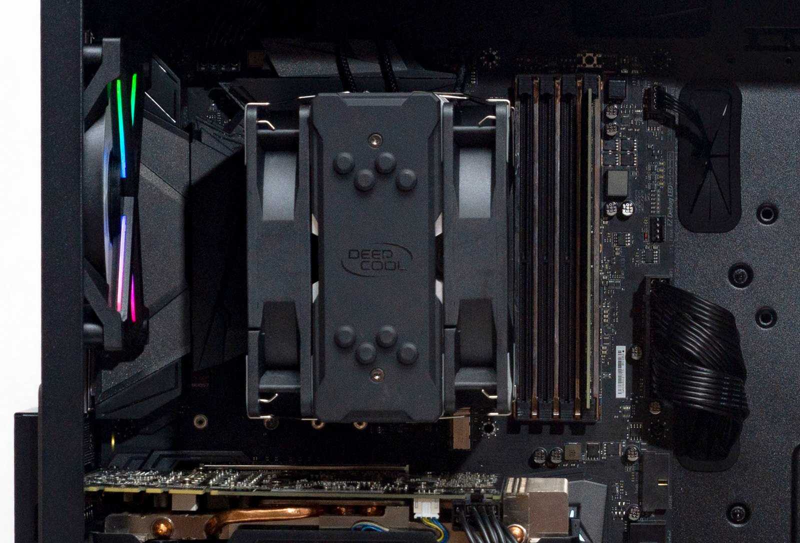 Но не нужно думать, что данный кулер избыточен для этого процессора. Ранее мы ставили на него Deepcool GAMMAXX 300, и температура была равна 94 °С при идентичных прочих условиях, думаем, что это связанно с недостаточным прижимом основания к крышке процессора из-за использования обычного клипсового крепления.