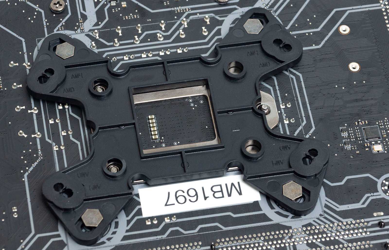 Далее в бэкплейт вставляем длинные винты, зафиксировав шестигранные головки в углублениях, соответствующих сокету.