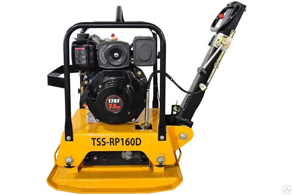 Строительный аппарат состоит из огромной плиты с загнутыми краями, размер которой составляет 500х700 мм. Благодаря весу 168 кг и ударам в количестве 3840 в минуту возможна производительность до 570 м² в час. Дизельный двигатель 178F генерирует 6 л.с. и уверенно толкает виброплиту по любой поверхности, даже с небольшим уклоном. Благодаря этому скорость перемещения составляет 21 м в минуту. Если крупную технику требуется вывезти из узкого места, запускается обратный ход. Четырехтактная силовая установка очень выносливая, но «прожорливая» — средний расход топлива достигает 1.1 л в час. Виброплита подходит для монтажа фундамента под дом, бетонного пола или для уплотнения асфальта. Стоя на месте она способна утрамбовывать почву на глубину до 50 см.