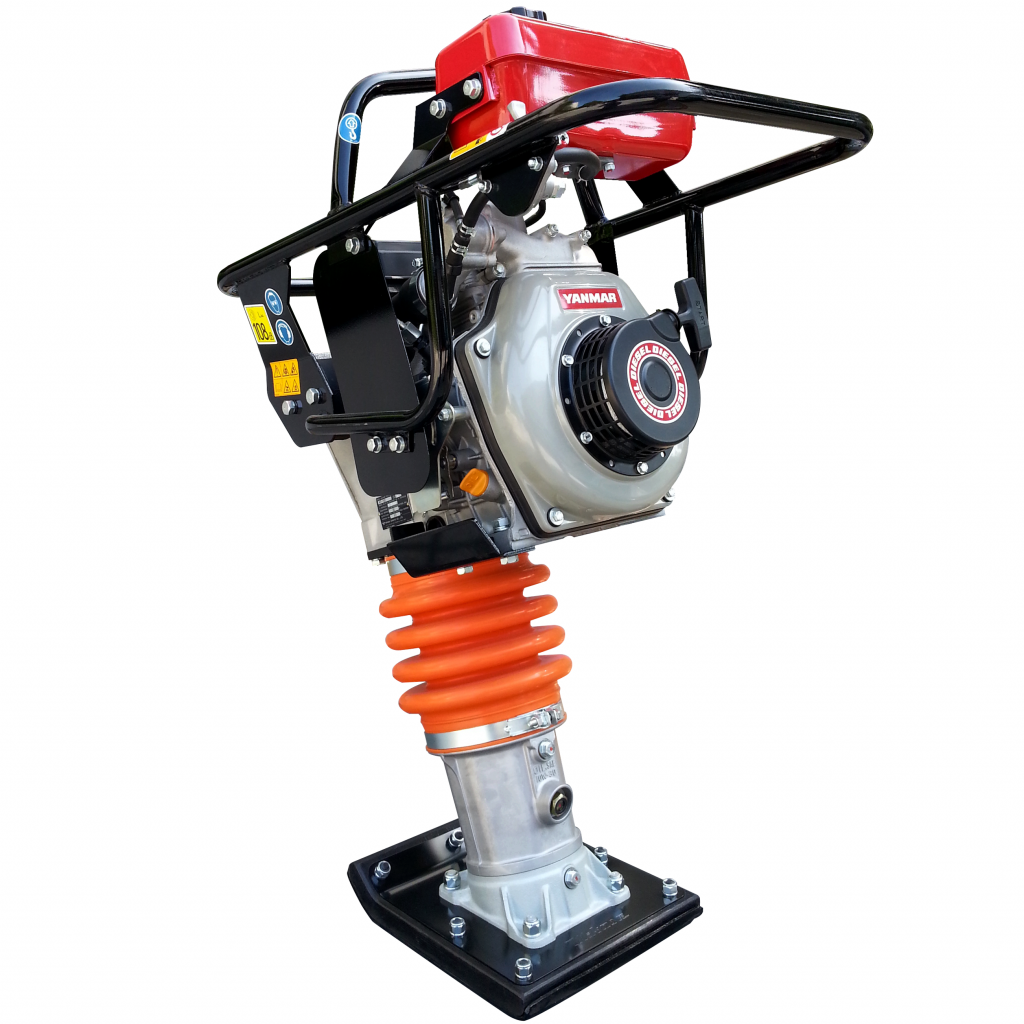 Виброплита имеет интересный форм-фактор с узкой подошвой 34х28.5 см, размещенной на высокой амортизационной стойке В профессиональной среде ее называют «виброногой». Рама из труб имеет форму квадрата и расположена сверху. На ней закреплен двигатель с объемом 219 см³, генерирующий 4.2 л.с. Несмотря на относительно малые габариты 1010х410х740 мм аппарат наносит 700 ударов с силой 15.7 кН. Мотор Yanmar L48N очень простой и выносливый. Отзывы показывают, что он легко запускается даже при отрицательных температурах.