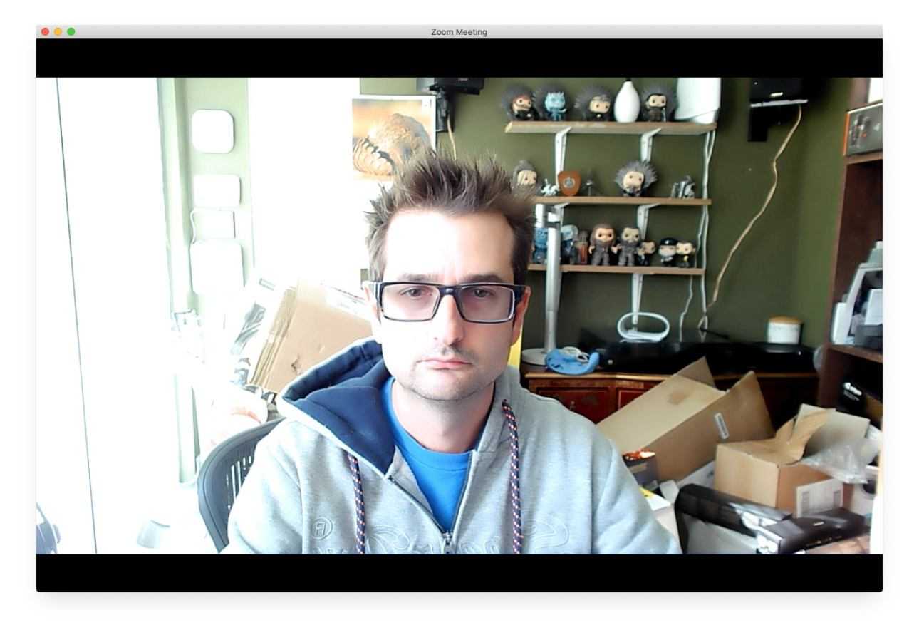 Однако камера не лишена проблем. Сидел в своем офисе, солнце светило сбоку, а камера переэкспонировала изображение, из-за чего было трудно разглядеть мое лицо (верхнее фото, ниже). Помогло закрытие жалюзи (нижний рисунок), но я все равно потерял много деталей на заднем плане.
