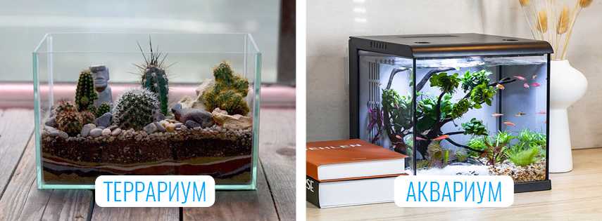 - Наличие специальной крышки в передней части контейнера: террариумы имеют, аквариумы — нет.