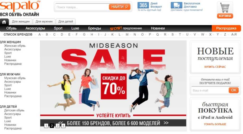 А вот с курьерской доставкой все не так радужно. Во-первых, она просто дорогая и ощутимо бьет по карману. Во-вторых, при возврате заказа доставку все равно придется оплатить. Еще одним минусом станет небольшой выбор обуви. Интерфейс сайта прост и удобен, пользователь быстро разберется в настройках и фильтрах.