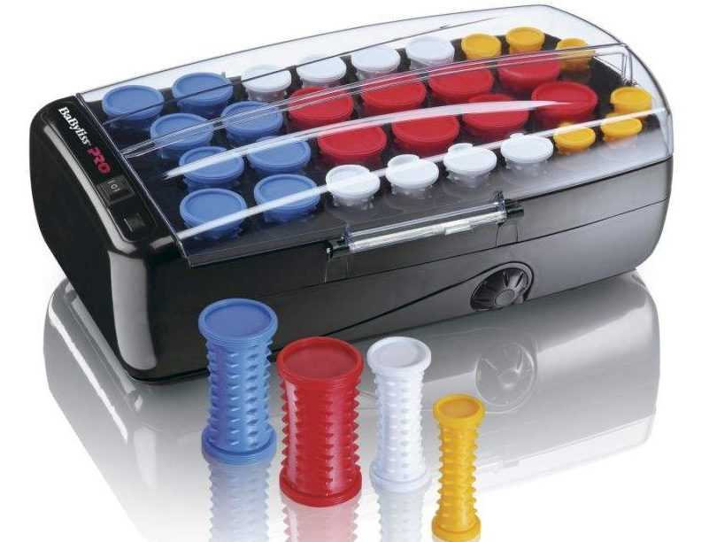 BaByliss PRO 3021E в комплекте 8 шт. – 38 мм, 6 шт. – 25 мм, 6 шт. – 19 мм. Подходит для всех типов волос с различной длиной. Зажимы двух видов. Материал керамический с велюровым покрытием. Индикатор нагрева расположен на одной из катушек. Время нагрева составляет 4 минуты. Длинный шнур – 2,7 м. Мощность – 230 Вт. Ценовое предложение от 4000 руб.