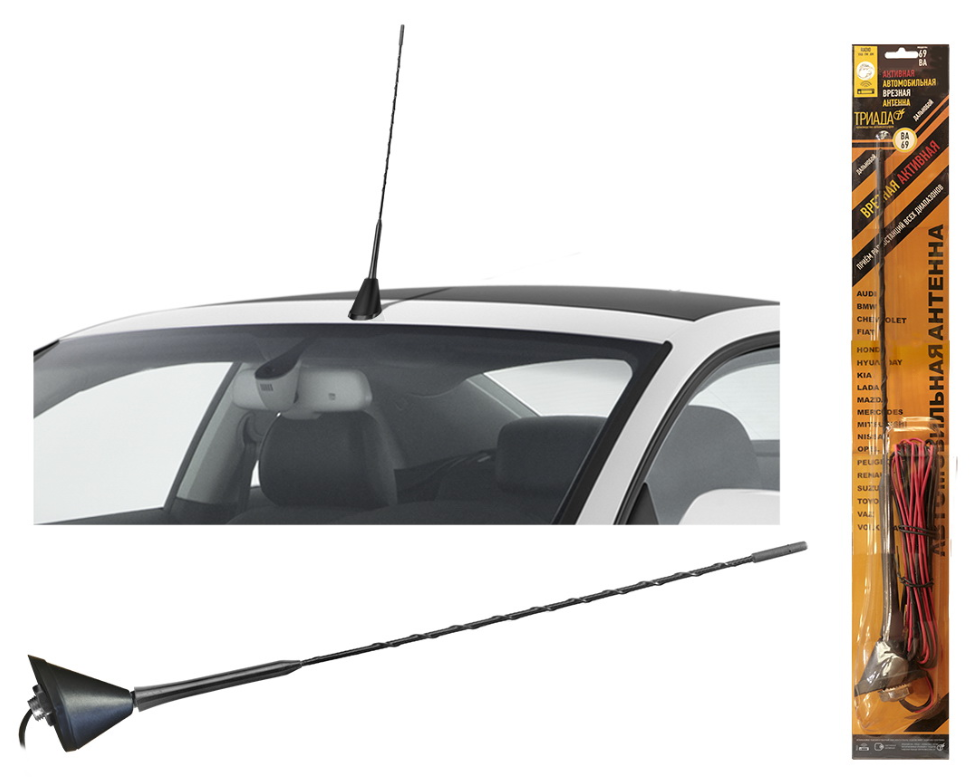 Небольшая активная антенна для салона автомобиля от известного производителя, которая выгодно отличается возможность скрытого монтажа. Правда, как и у аналогов, сигнал сильно зависит от расстояния между «усиком» и кузовом авто. Чтобы выбрать подходящую точку для установки, лучше попробовать несколько разных положений и выбрать из них лучшее опытным путем. В случае оптимального монтажа можно рассчитывать на получение сигнала без помех на расстоянии до 70 км от города. Поставляется сразу со всем, что потребуется для установки.