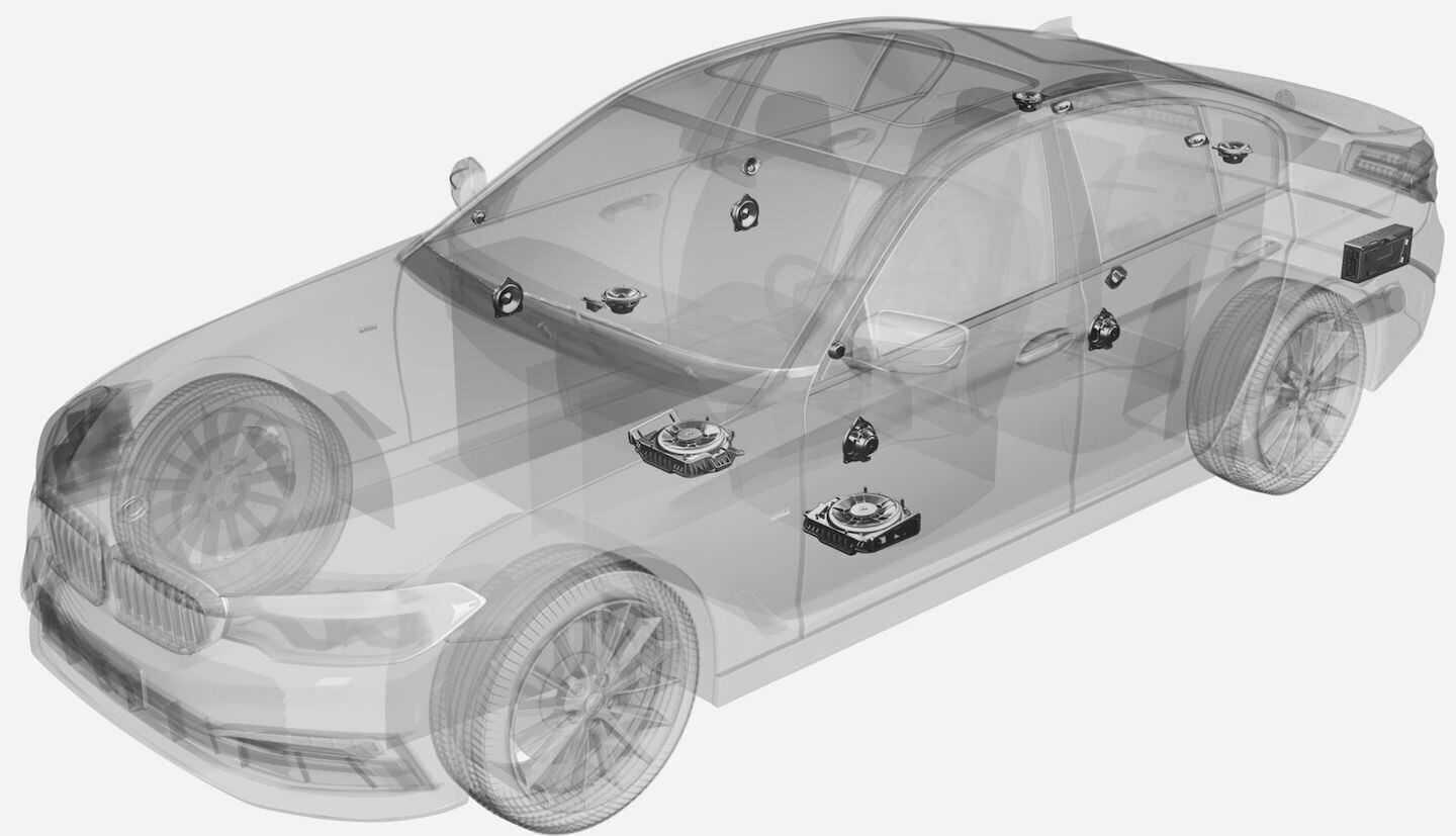 В штатном оснащении флагманской модели 7-й серии фигурирует 500-Вт усилитель и 12 динамиков. Флагманская система BMW от Bowers & Wilkins «Diamond Surround Sound System» — 1 400 Вт и 16 динамиков — может быть установлена опционально на такие модели, как седаны 7-й серии или модель M850i.