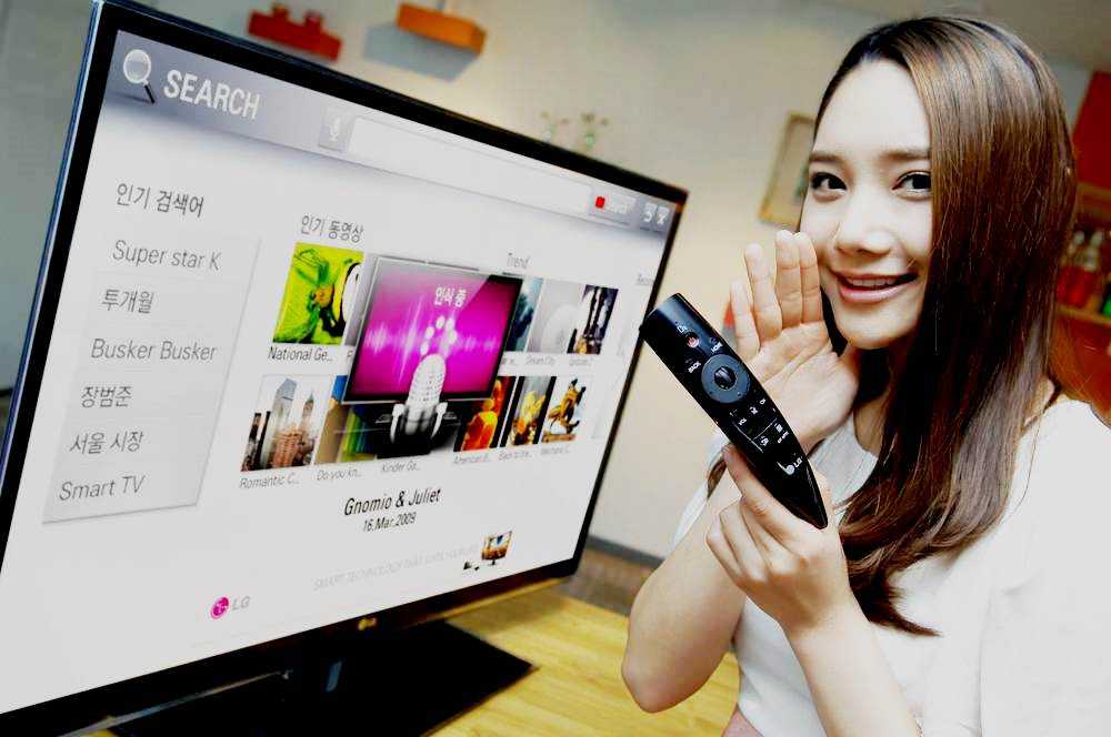 | Пультом | Усовершенствованный вариант – тачпад небольшого размера и веса. Внешне напоминает вариант от ноутбука. Специальный указатель помогает управлять телеэкраном в процессе просмотра веб-сайтов или меню. Нажимать на кнопки пульта и стрелки необходимости нет. |