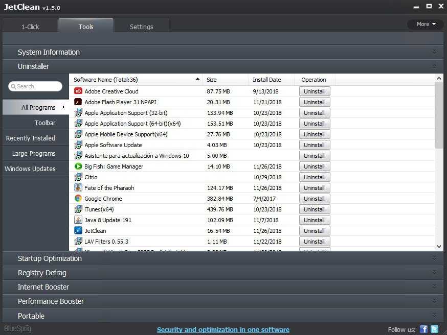 Использование программы, которое начинается буквально с одного клика, позволяет избавляться от «битых» реестровых веток, проводить полную деинсталляцию приложений, чистить оперативку и выявлять неиспользуемые ярлыки.