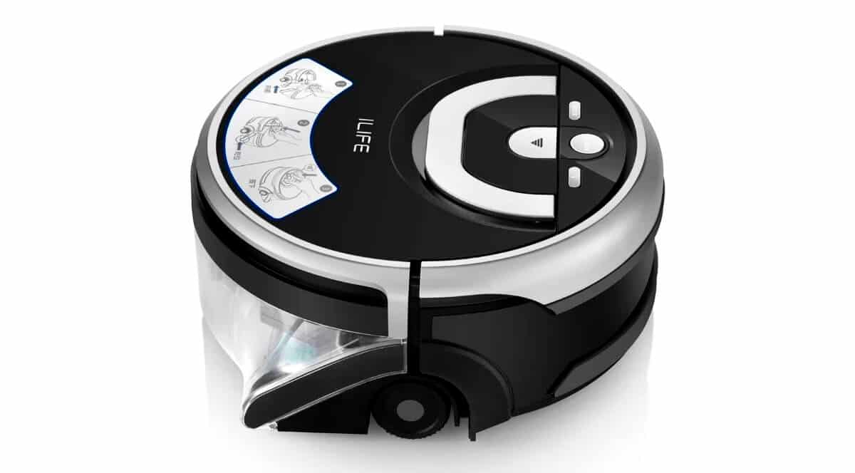 Новая сравнительно дешевая модель от бренда iBoto имеет тонкий корпус и тихий режим работы (54 дБ). Навигация основывается на ИК-датчиках в сочетании с гироскопом. Прорезиненная турбощётка отлично убирает различные загрязнения, вне зависимости от напольного покрытия. Робот запрограммирован на 4 режима уборки, автономно работает 120 минут. Ёмкость контейнера для воды составляет 0,35 л., для мусора — 0,45 л. Устройство полностью оправдывает свою цену.