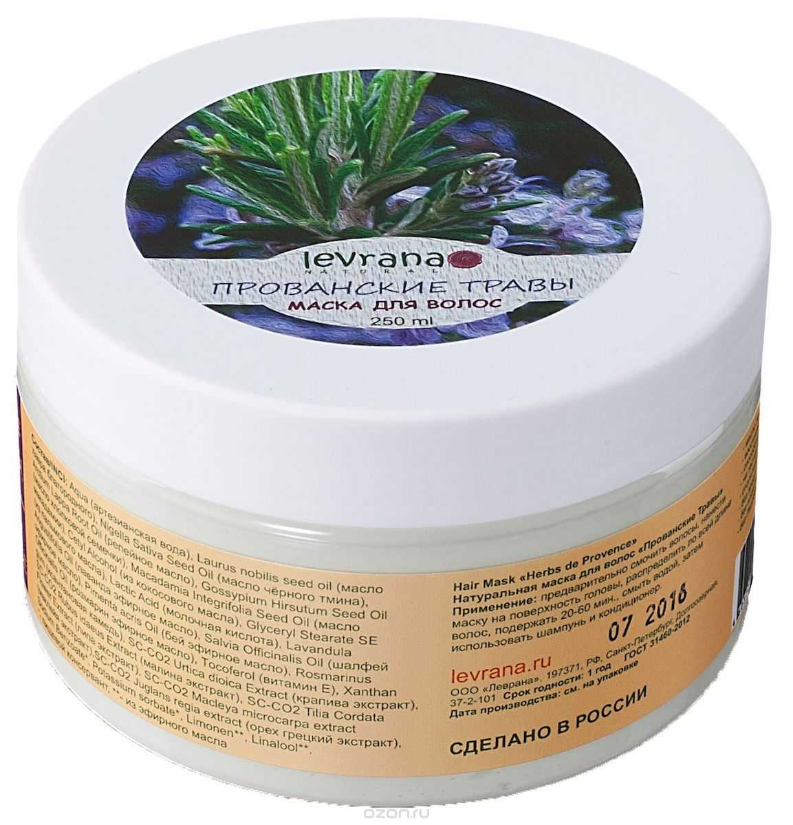 «Прованские травы» является средством от Levrana, оно обладает полностью натуральным составом, в него включены только растительные экстракты и эфирные масла. Природные компоненты уже после первого применения укрепят прическу и восстановят поврежденную структуру. Стоимость составляет около 500 рублей.