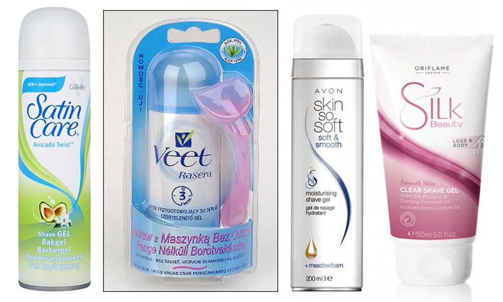 В ассортименте Gillette и Veet есть средства для разных типов. Они приятно пахнут, ухаживают за телом во время депиляции. По отзывам женщин неплохо справляются с поставленными задачами средства Эйвон и Орифлейм. Некоторые дамы практикуют использование мужской косметики для бритья.Их состав и свойства не отличаются от женских, но они обладают более агрессивным действием, выраженным запахом.