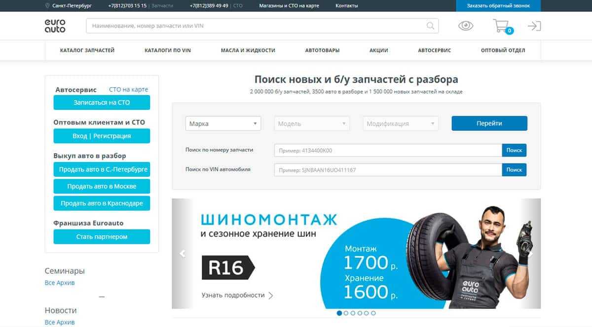 В каталоге с поддержанной резиной (б/у) более 3000 вариантов начиная от 450 руб. за одну покрышку. Летние оригинальные модели от производителей Chevrolet, Mercedes Benz, Renault, Hyundai и Kia. А также зимняя резина в хорошем состоянии на Opel, Mitsubishi и Nissan. ЕвроАвто — 22 розничных магазина, 16 станций технического обслуживания и сеть складов по всей стране.